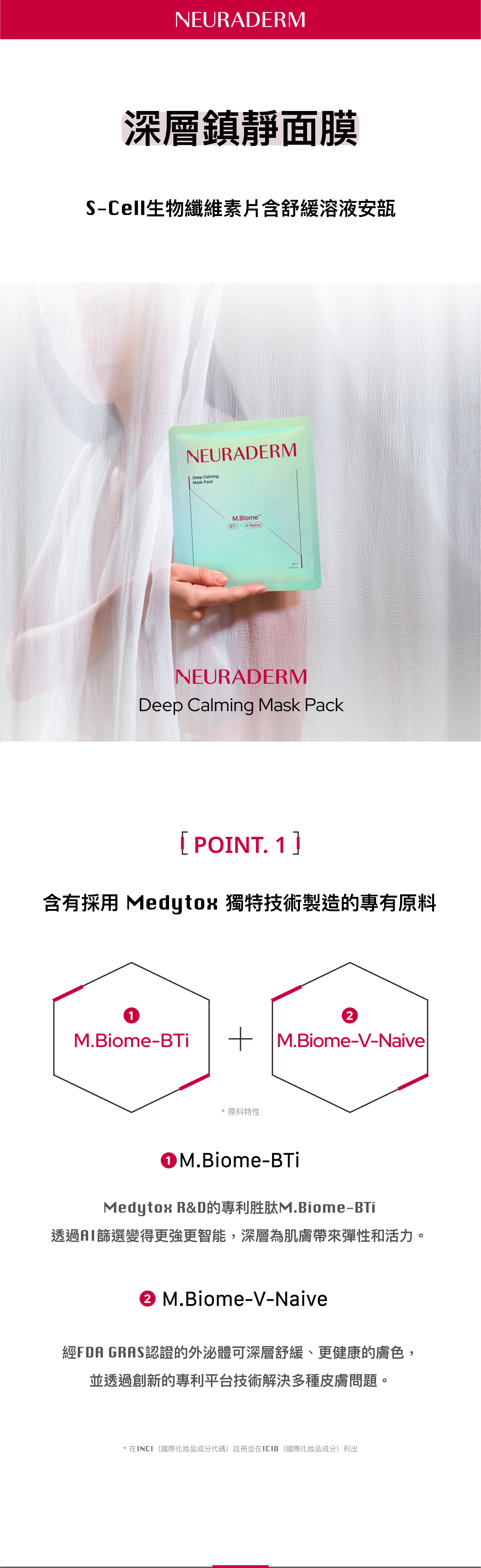 加上100% 植物源性黏蛋白舒緩複合物(亞馬籽、芙蓉...等)、積雪草萃取物、蒔蘿萃取物,快速緩解受刺激的皮膚