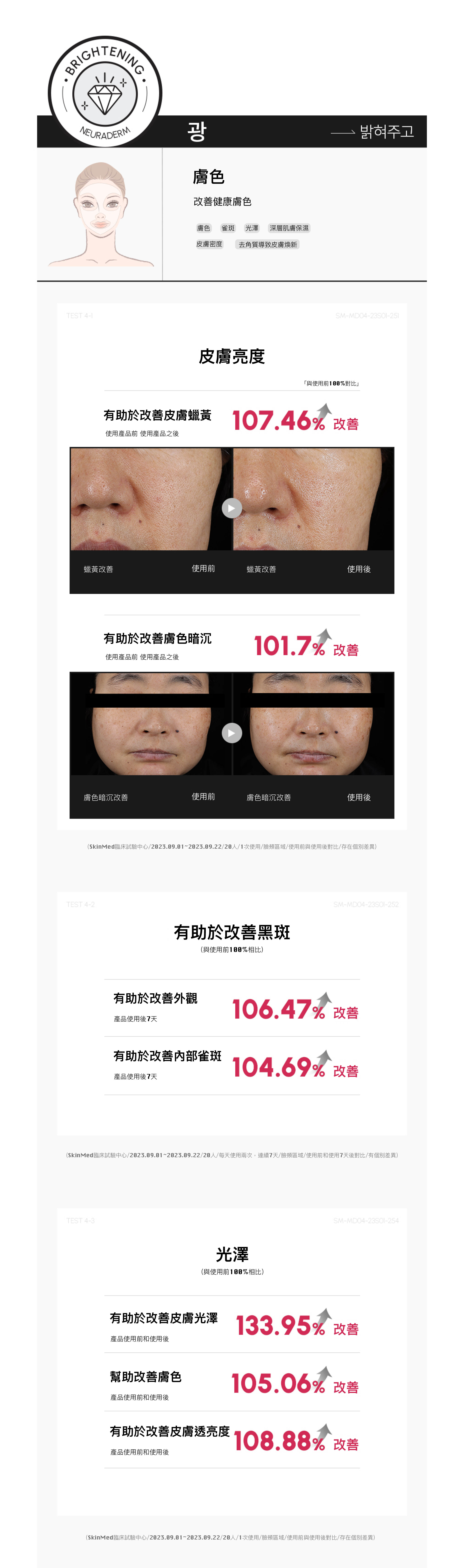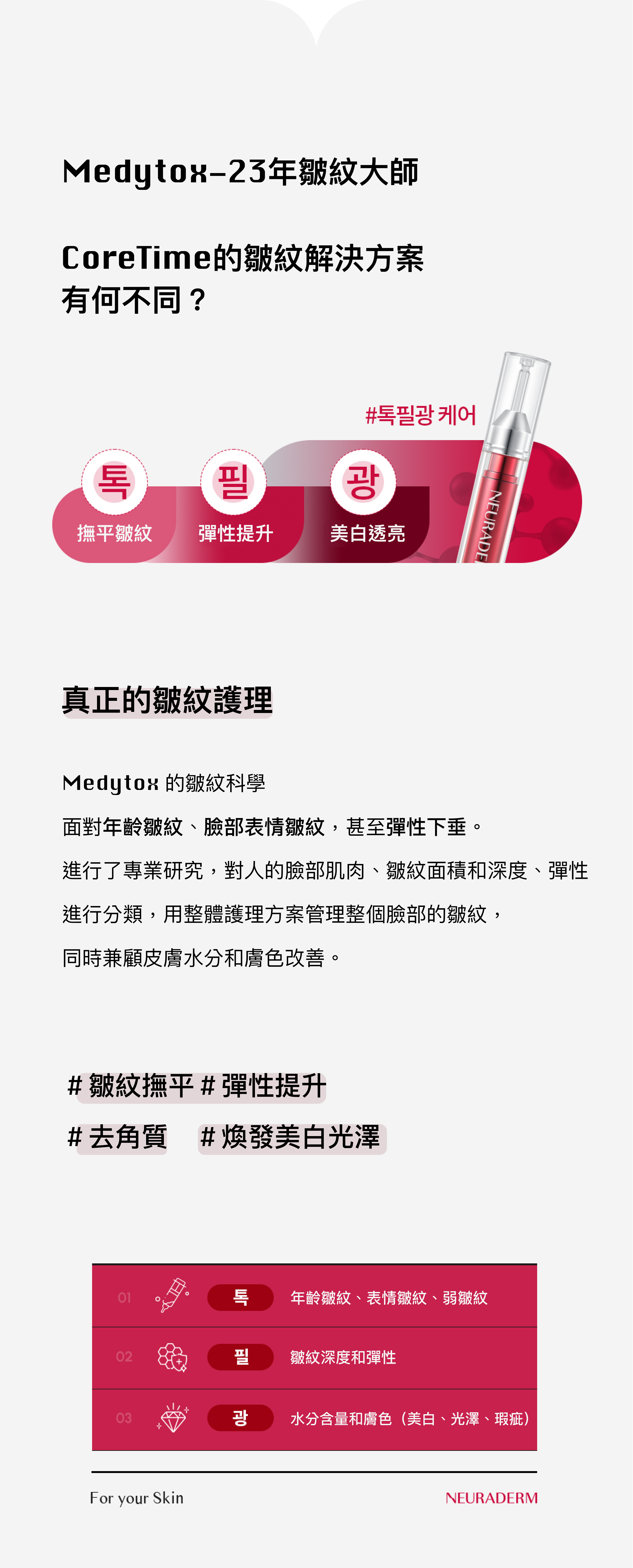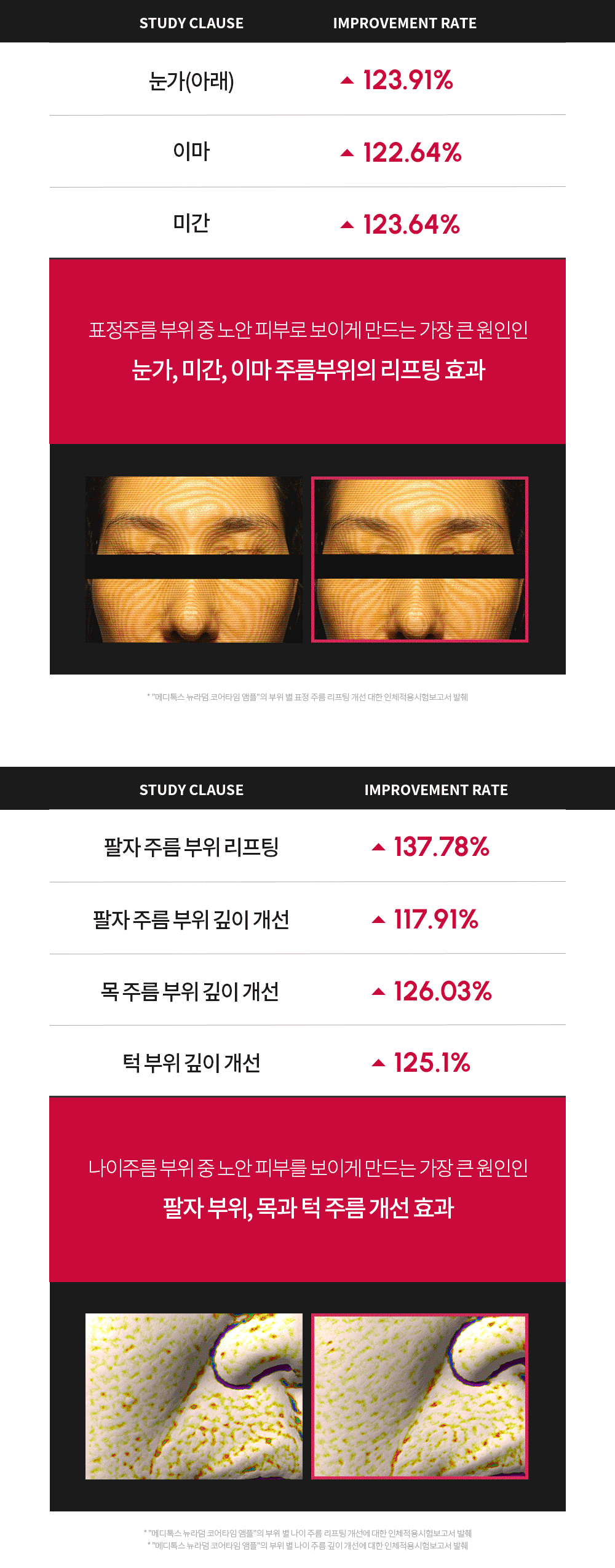 *摘自「Medytox Neuradum Core Time Ampoule」各區域改善臉部除皺效果的人體應用測試報告